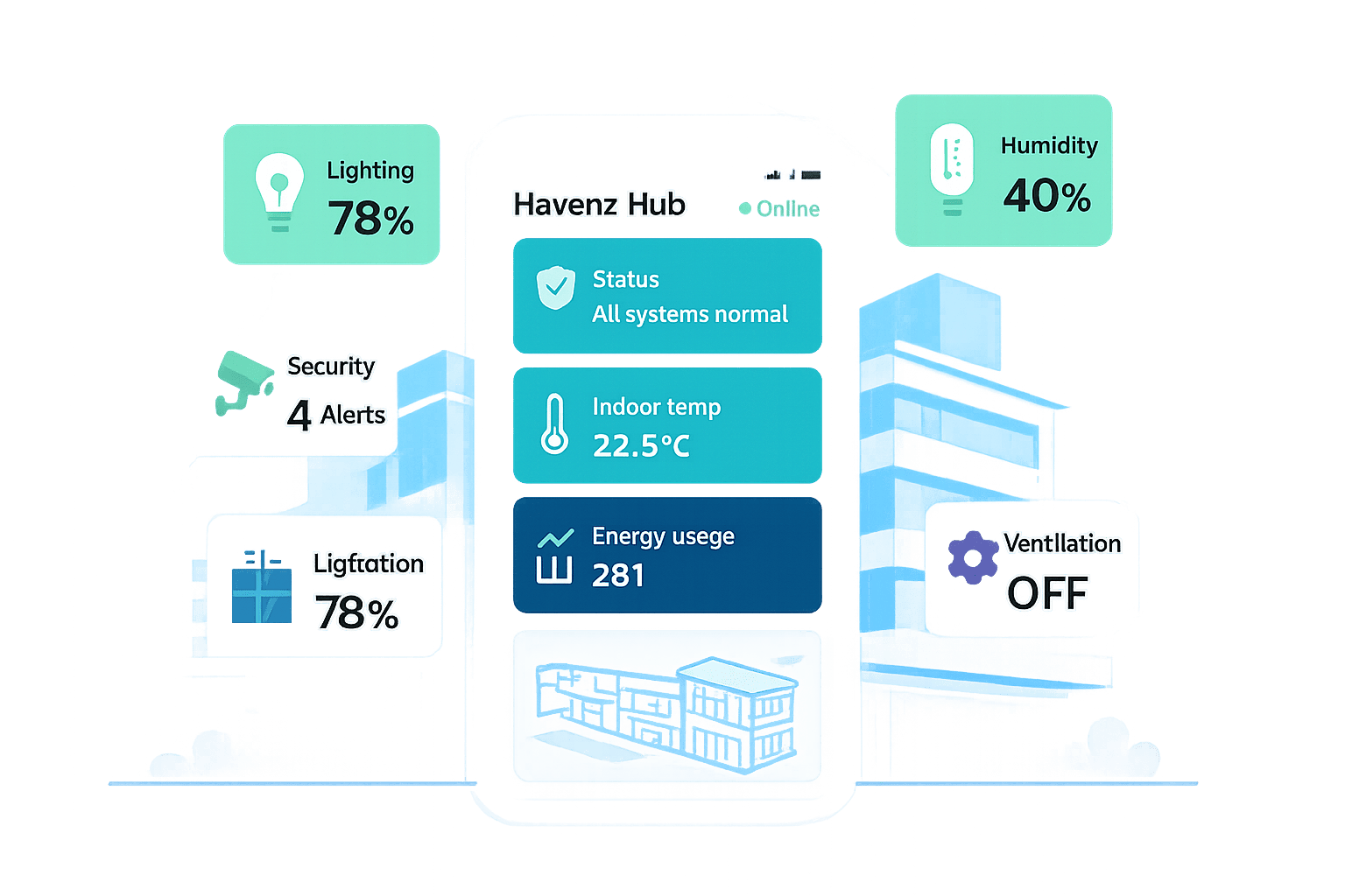Havenz Hub is the world’s first AI-powered, blockchain-secure, IoT-connected Building Management System (BMS) built for the future of infrastructure.